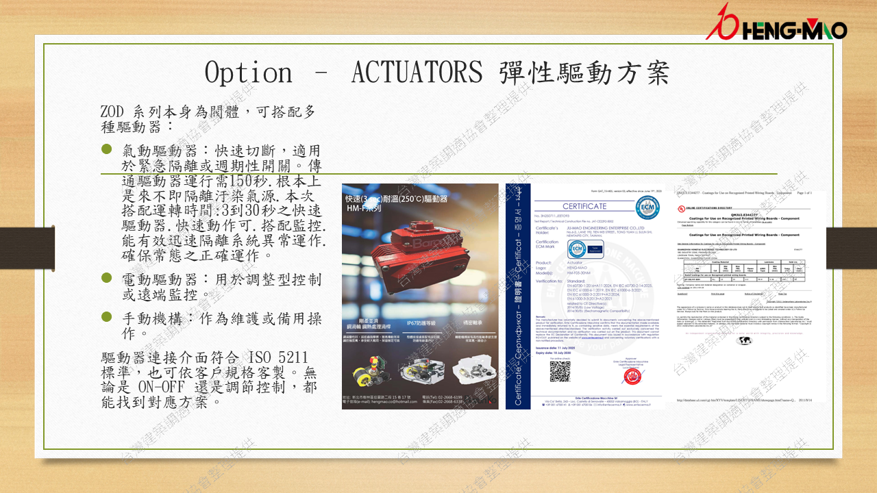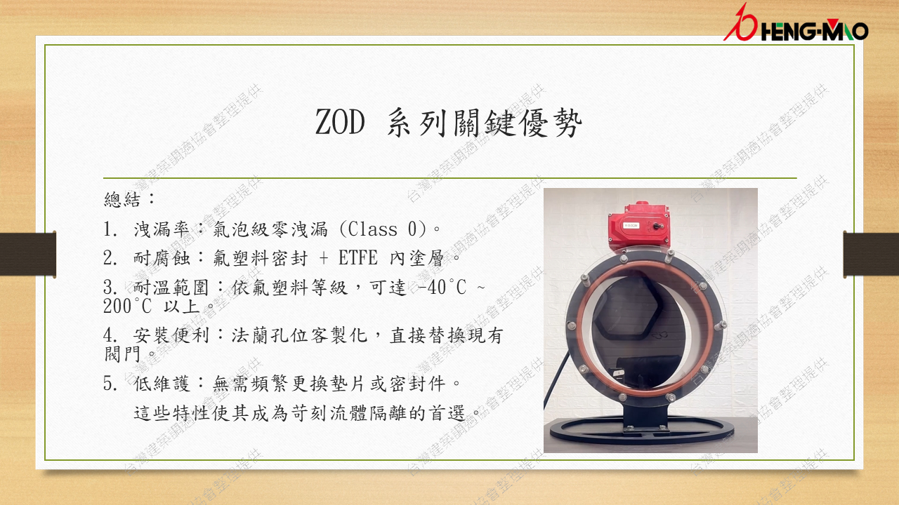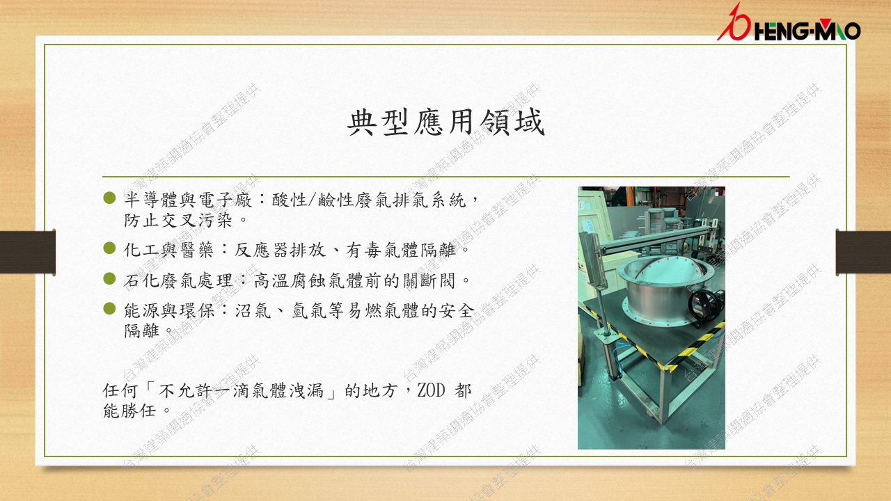 特別適用於半導體、醫藥實驗室、化工製程及腐蝕性排氣系統等對安全與穩定性要求極高的場域。對於任何不能容許微量洩漏的應用而言,ZOD 系列提供了更可靠的隔離方案。